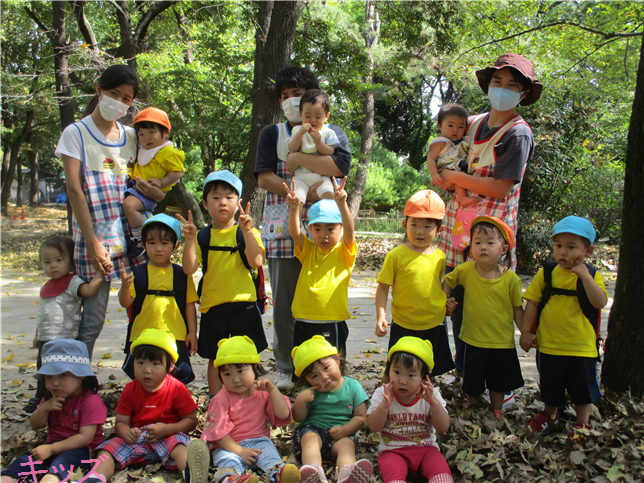 公園の遊具で体をたくさん動かし、おにぎり弁当を外で食べて、楽しく過ごしました。