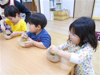 自分で点てたお茶は美味しい様で、「おいしーい」と喜んで飲んでいましたfutaba.gif